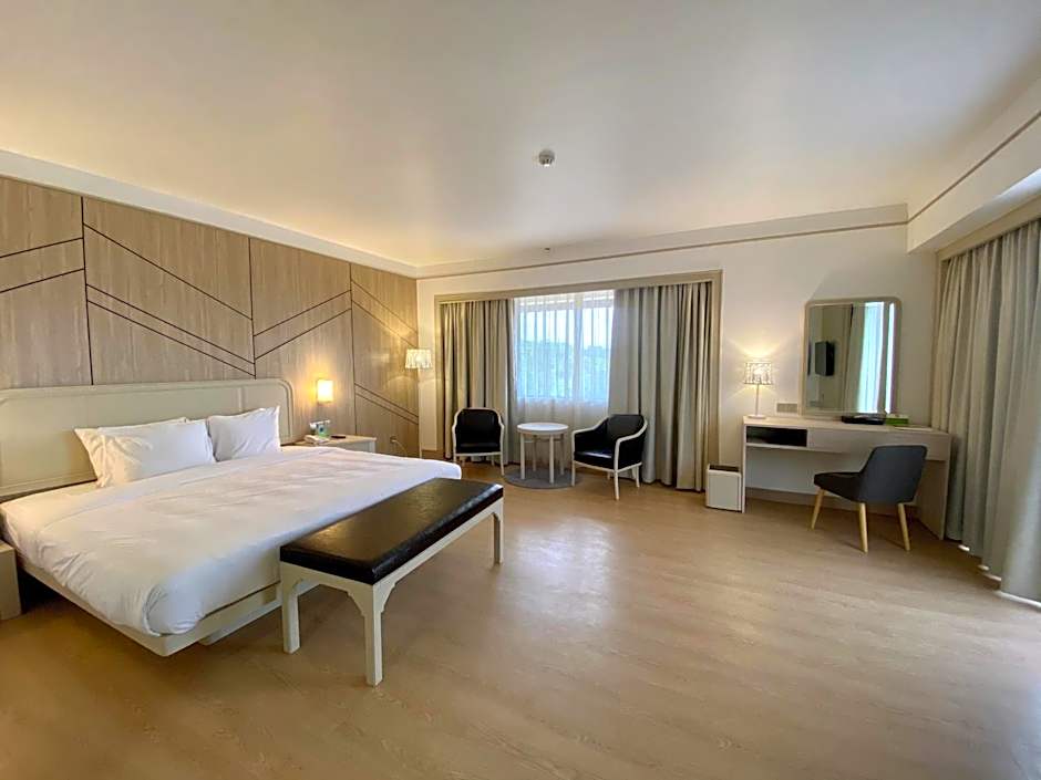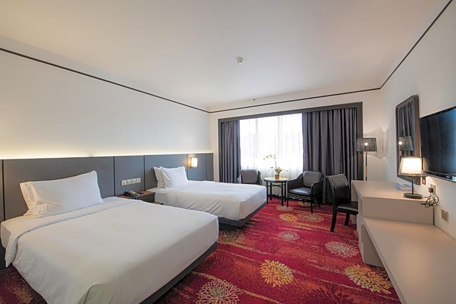 The Sabah Hotel offers various rooms including Junior Suites, Deluxe Twin and Double Rooms, Superior Double and Twin Rooms, and Executive Suites. The rooms range from 344 sqft to 764 sqft in size and can accommodate 2 adults and 2 children. All rooms are non-smoking and feature either a King size bed or Twin beds.