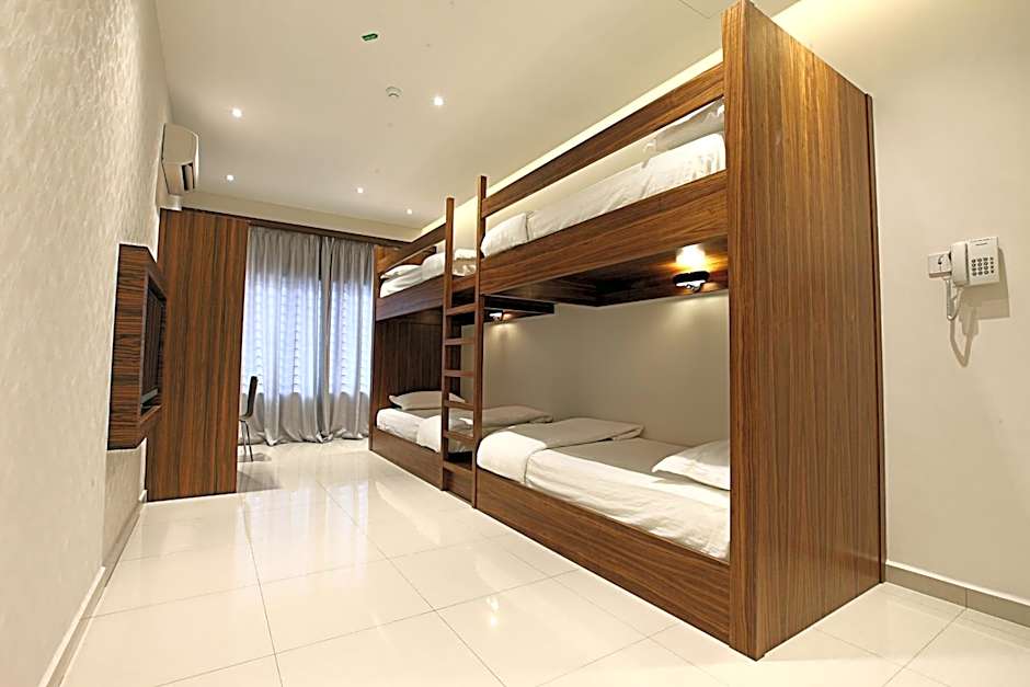 The Sri Enstek Hotel KLIA, KLIA 2 & F1 offers a variety of room options. They have Family Rooms that accommodate 4 adults and 1 child with 4 bunk beds, Single Rooms for solo travelers with a twin bed, and Double Rooms with either a queen-size or king-size bed that accommodate 2 adults and 1 child. There is also a Deluxe Family Room that accommodates 3 adults and 1 child with a twin bed and a queen-size bed, as well as Twin Rooms without windows for 2 adults with 2 twin beds. Smoking is not allowed in any of the rooms.