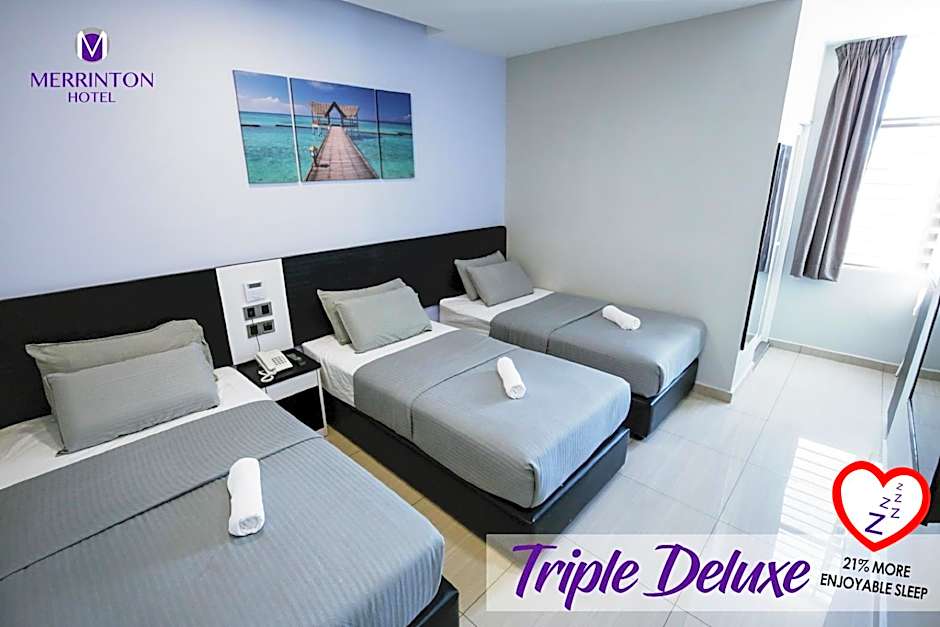 The Merrinton Hotel Temerloh offers a variety of rooms including Deluxe Twin, Deluxe Triple, Family, Queen Room - No Window, Superior Family, and Classic Triple rooms. These rooms accommodate between 2 and 4 adults, plus 1 or 2 children. Smoking is not allowed in any of the rooms. The bed sizes range from Twin to Queen size, with some rooms offering multiple beds. The room sizes vary from 129 sqft to 377 sqft.