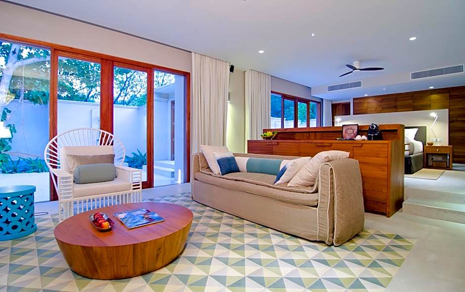 Overlooking the blue lagoon with sunset views, the air-conditioned and modern villas are equipped with a flat-screen cable TV, seating area with sofa and work desk. There is also a mini-bar. Featuring a shower, the private bathroom also comes with a bath tub and hair dryer.