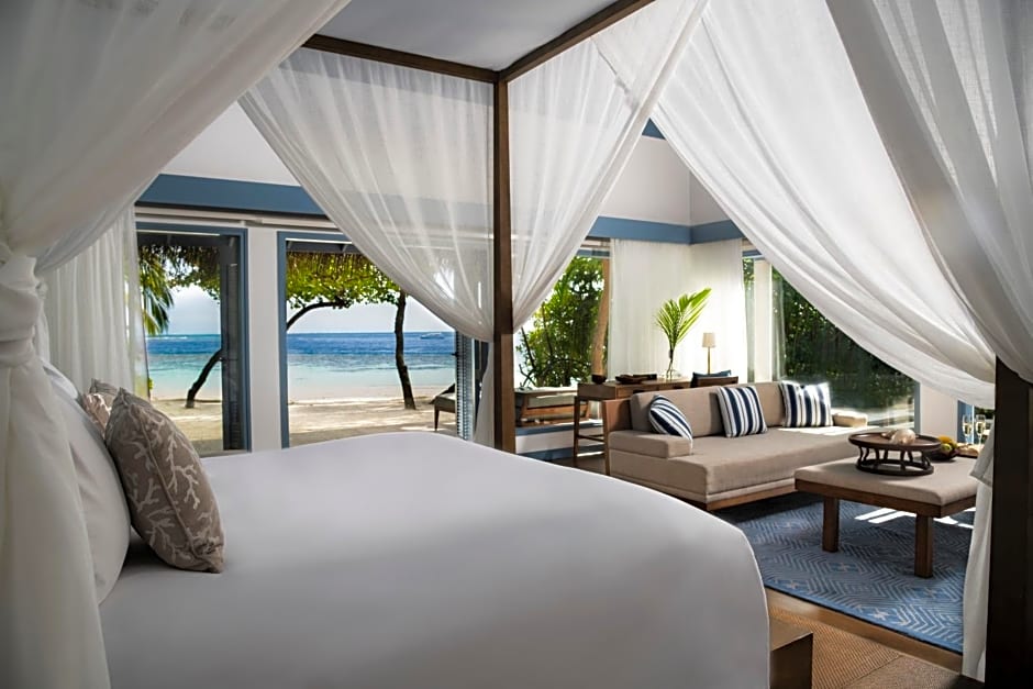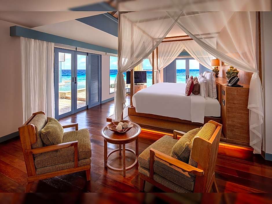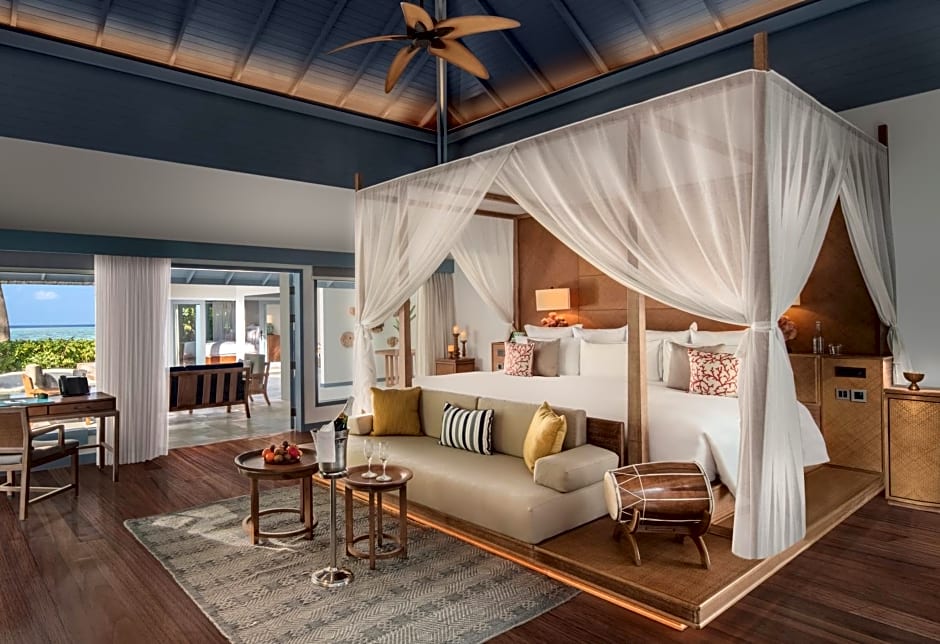 At Raffles Maldives Meradhoo, adventure awaits around every corner. Whether you’re lounging by your private pool, indulging in spa/wellness packages, or letting your little ones have the time of their lives at the free kids' club, there’s something for everyone. With an array of water sports facilities available, you can test your skills on the waves or simply relax on the pristine beach, equipped with beach chairs and umbrellas for ultimate relaxation. For those who value their downtime, enjoy live music performances or simply stream your favorite shows on the streaming services in your soundproof room.