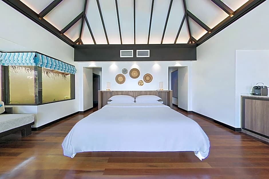 Lean back, relax, and enjoy the view of the stunning turquoise-blue Indian Ocean. Our Water Bungalows feature a floor-to-ceiling glass opening onto a private deck facing the views of the Indian Ocean with direct access to the water. The Water Bungalows features a king-size Sheraton Signature Sleep Experience, a vibrant bathroom finished with marble, a free-standing rain shower, and a separate bathtub with a scenic ocean view.