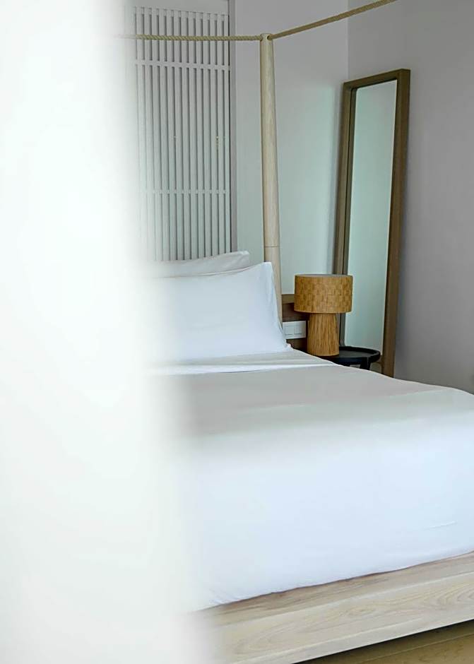 It comes with furnishes terrace facing the beach, reading nook, AC and fans, fully-stocked mini-bar, coffee machine, Earth (still) & Dance (sparkling) water and all the technology (Wifi, television, phone...)