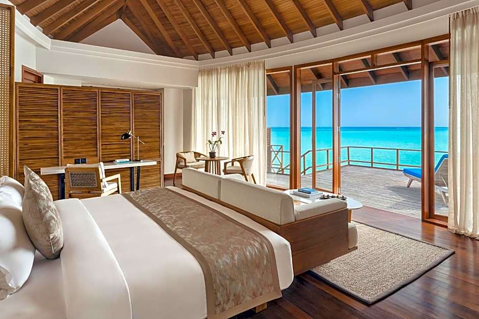 Offers sunrise views, direct lagoon access and waterfront sundeck. It has floor-to-ceiling windows, terrace with 2 loungers and a full-stocked mini-bar. The suites are equipped with a flat-screen TV and a Nespresso coffee machine. The private bathroom comes with a bathtub, rainshower and bathrobes.