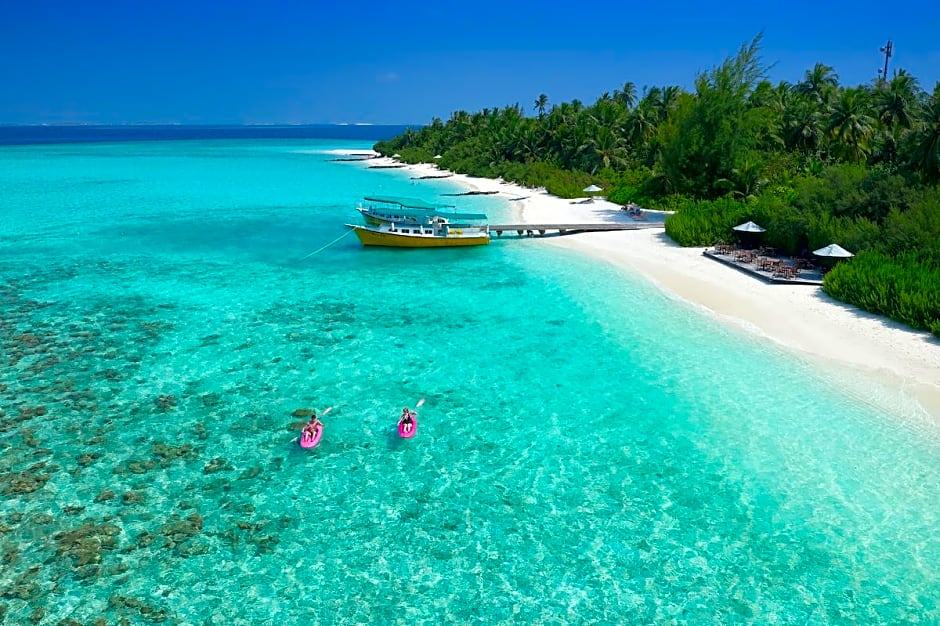 At Embudu Village Resort, adventure and relaxation are par for the course. Dive into a world of excitement with snorkeling and water sports facilities available for those looking to explore the vibrant underwater life, or unwind at the serene spa with a rejuvenating massage. As the sun sets, the beachfront restaurant offers a delightful dining experience alongside live music performances that will have you swaying in your seat. Enjoy the little ones with a kid-friendly buffet and spend lazy days on the sun deck with complimentary beach chairs and loungers.
