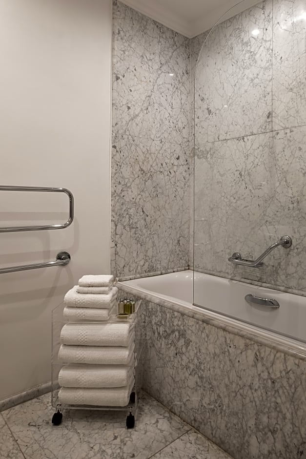 Large suite with beautiful views. Features a fully fitted marble bathroom and a free-standing bath next to the bed.