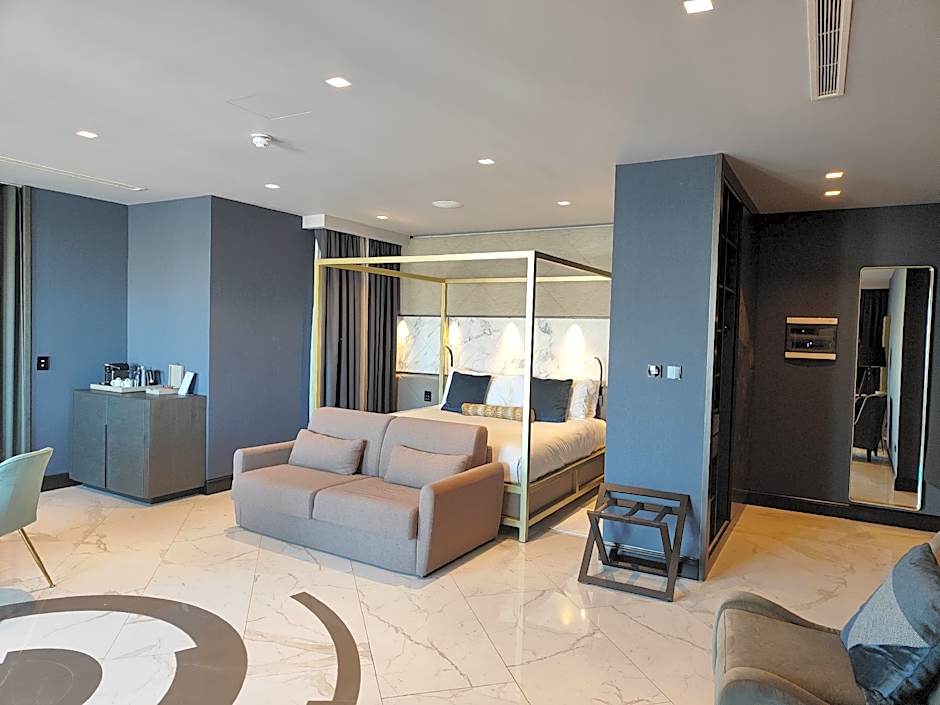 The Lure Hotel & Spa - Adults Only offers a variety of room types, including Double Rooms and Suites with Terrace or Balcony. All rooms accommodate 2 adults, have a King size bed, and do not allow smoking. The room sizes range from 355 sqft to 1023 sqft, with some offering side sea views.