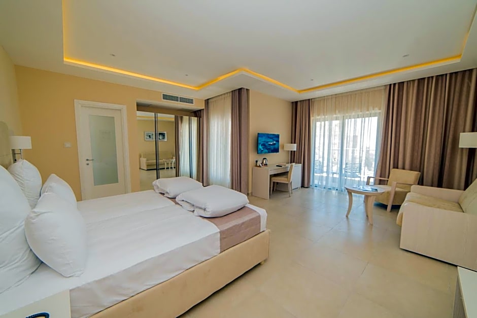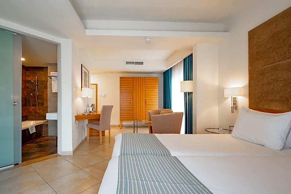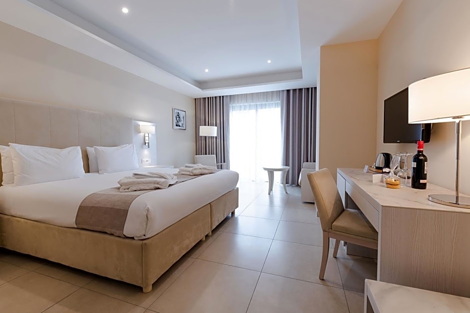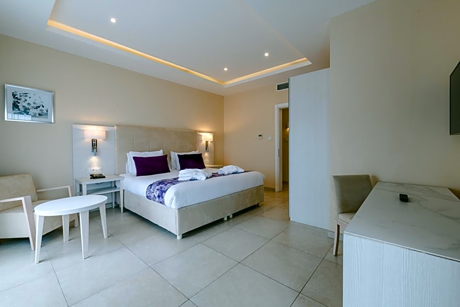 This suite is composed of a separate bedroom with seating area and a bathroom with walk-in shower. It includes a balcony featuring deckchairs and overlooking the garden or Mellieha's main streets. It also comes with a private terrace with hot tub and views of Gozo and the sea. WiFi is free.