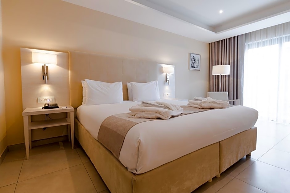 This air-conditioned room has a private balcony overlooking Mellieha's streets, tea/coffee making facilities, a satellite TV and free WiFi. Some rooms also have lateral sea views.