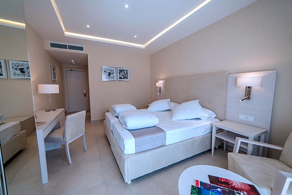 This air-conditioned room has a private balcony overlooking the garden and swimming pool. It offers tea/coffee making facilities, a satellite TV and free WiFi. Some rooms also have lateral sea views.