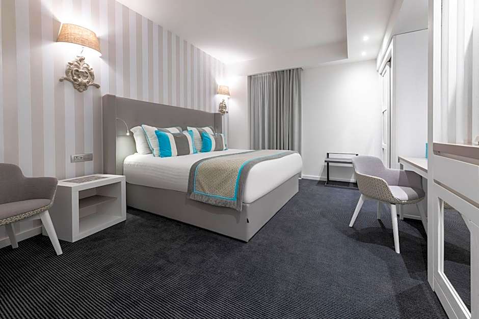 The Standard Room at Hotel Juliani in Malta features elegant modern decor, plush bedding, a stylish bathroom, a cozy ambiance, high-speed Wi-Fi, and a large flat-screen TV, providing a sophisticated and comfortable stay without a sea view