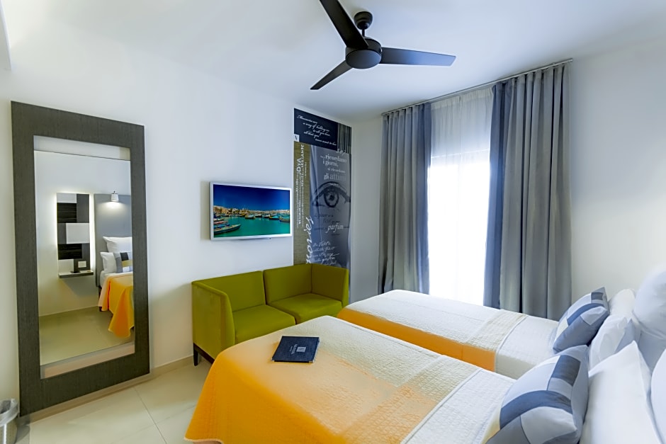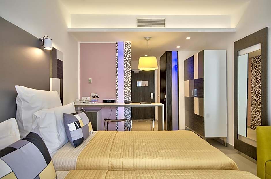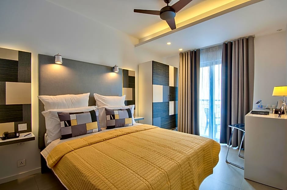 Address: Dobbie Street, Paceville, St Julians, Malta. Featured amenities include a restaurant, an outdoor swimming pool (free), a free business center, private parking (free), and free Wifi, along with room service, a 24-hour front desk, air conditioning, a bar, and a tour desk. Additional conveniences include private entrance, terrace, soundproof rooms, non-smoking rooms, beach umbrellas and beach chairs/loungers, elevator access to upper floors, free toiletries, and a bidet. Shuttle service (extra charges) and meeting/banquet facilities (extra charges); babysitting/child services (extra charges) are also available.