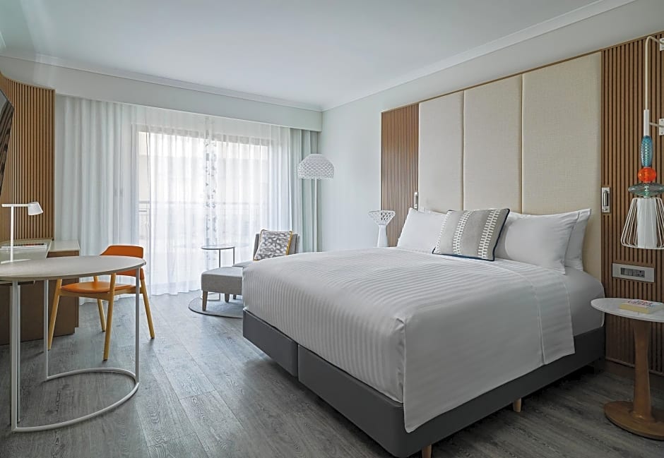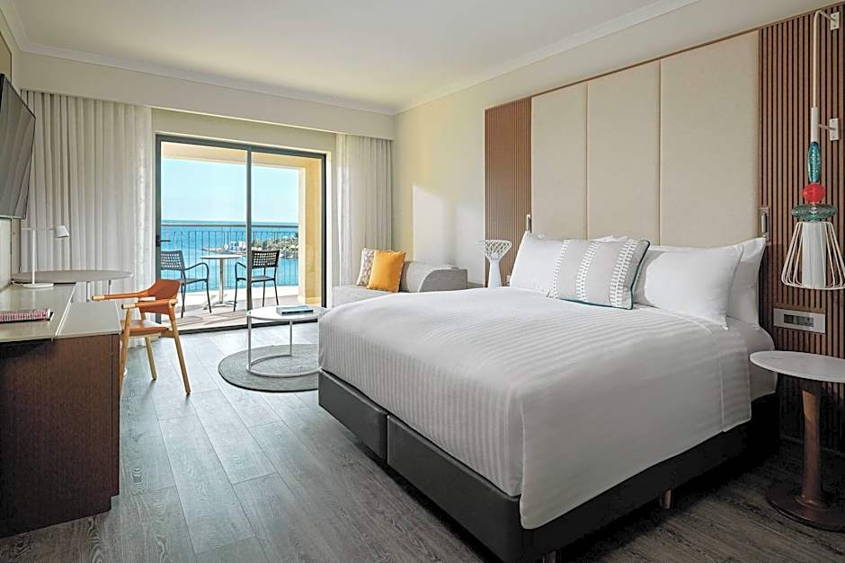 Modern and spacious design, complemented with large balcony enjoying sea views. Features a large king bed, bath & separate walk-in shower, 55-inch TV, air-conditioning, mini-bar and tea & coffee making facilities.