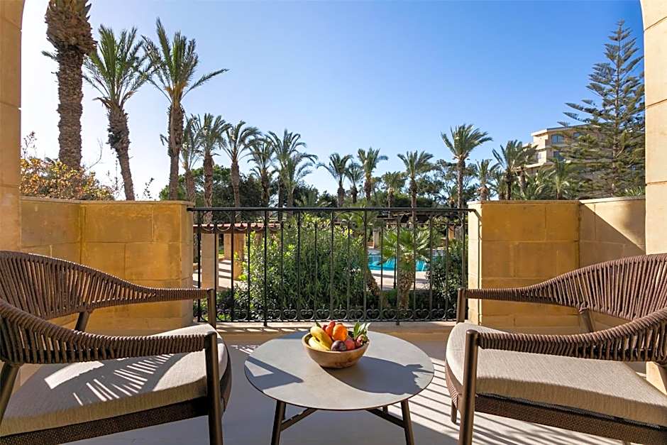 Spacious Suite with calming views, two separated areas, an additional courtesy bathroom, and an opulent marble bathroom with premium amenities. A private Gozitan balcony for unwinding and reenergizing.