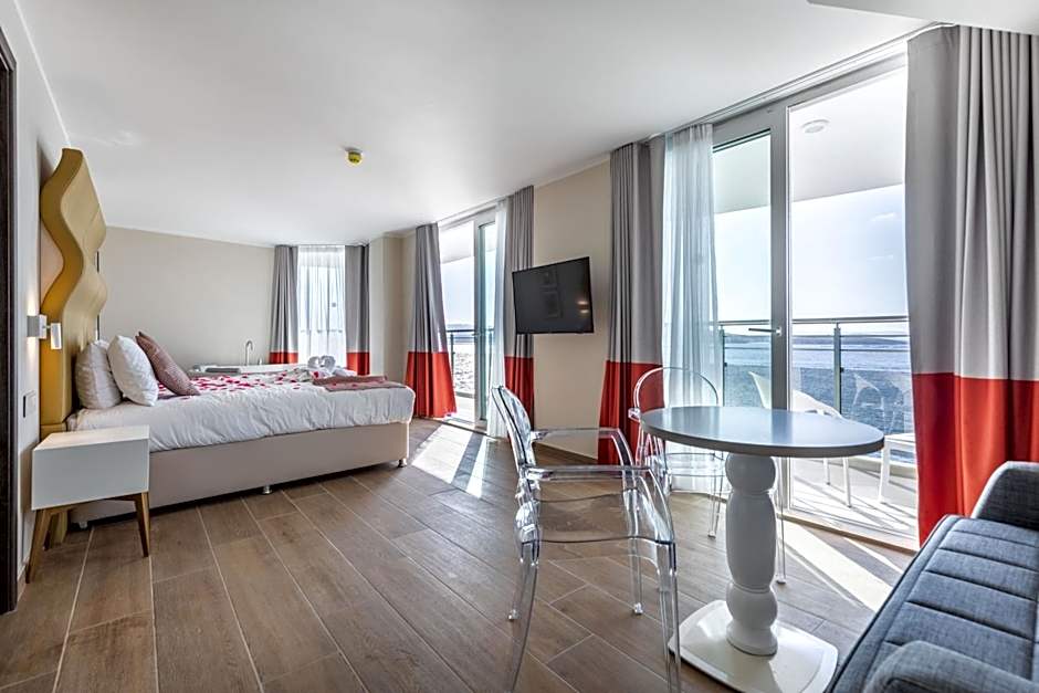 This corner suite features modern décor, an internal hot tub and a balcony with table and chairs and views of the sea and St. Paul's islands. Comes with air conditioning and free WiFi, as well as tea/coffee making facilities, a mini-bar, a safe and a 43" satellite TV. The private bathroom is fitted with a shower and hairdryer.