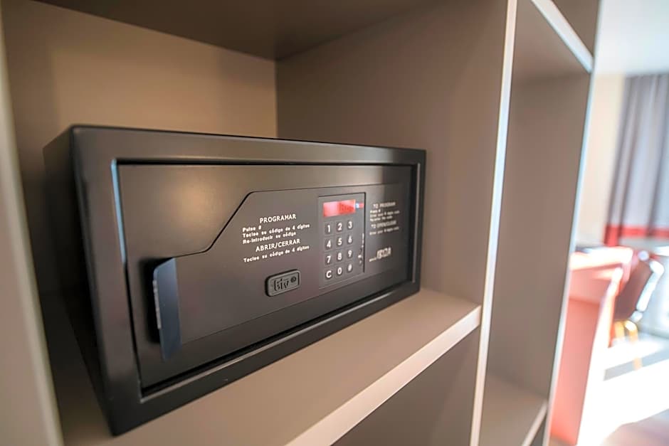 This modern room features a large corner terrace with table and chairs and offering views of the town. With air conditioning and free WiFi, it also comes with tea/coffee making facilities, a mini-bar, a safe and a 43" satellite TV. The private bathroom is fitted with a shower and hairdryer.