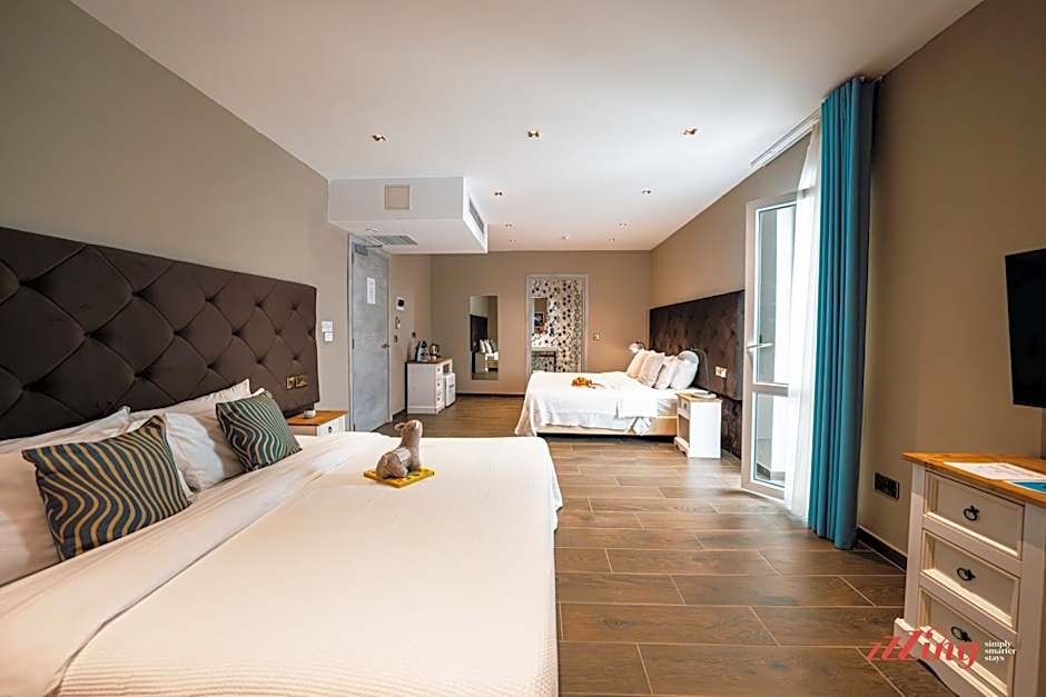 A diverse room lineup includes Deluxe, King (a 215 sq ft double) for couples, as well as Suite, Terrace and Penthouse Suite for those chasing sweeping views. For families or groups, options like Family Suite (388 sq ft) with two King beds and various Junior Suite variants provide ample space, while additional studio and suite options round out the collection.
