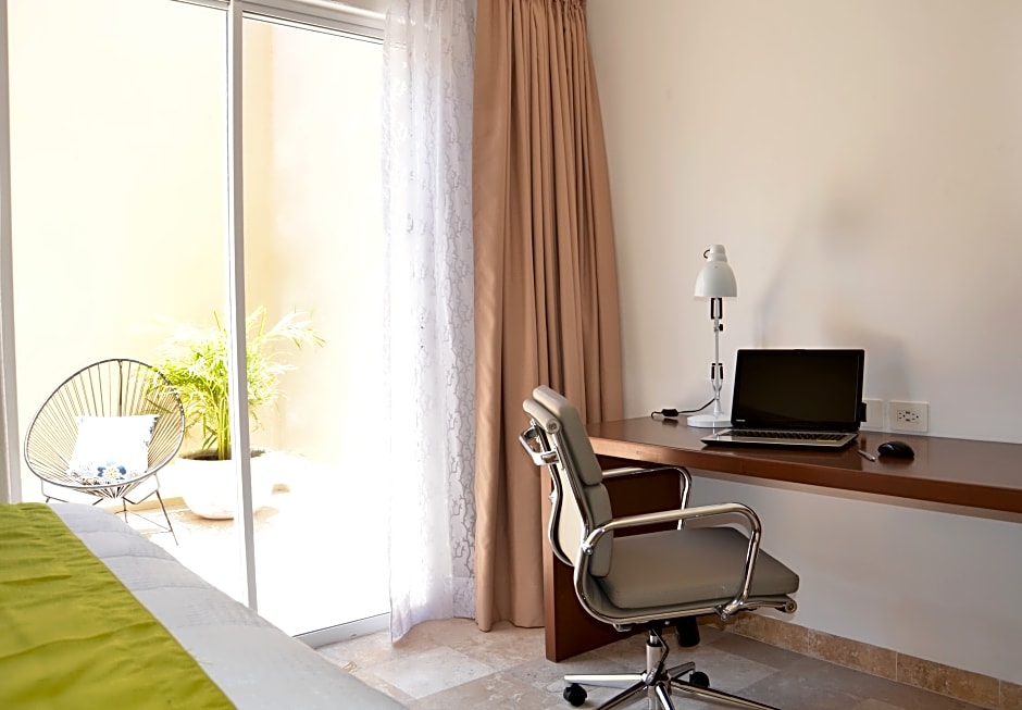 A few blocks from the Malecon and right across from a plaza surrounded by many great food options and convenience stores. Hotel open air spaces courtyard and rooftop pool paired with a modern aesthetic created an elevated experience. Excellent customer service, guests are treated with kindness and hospitality.