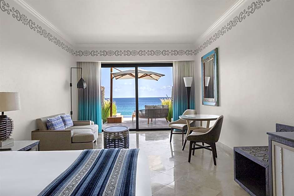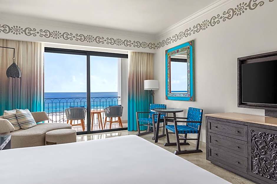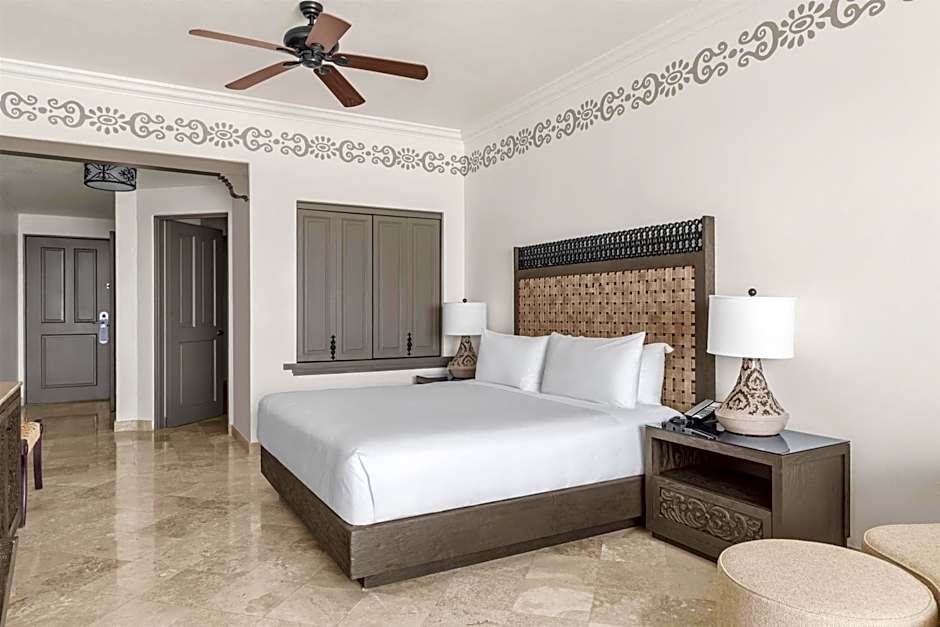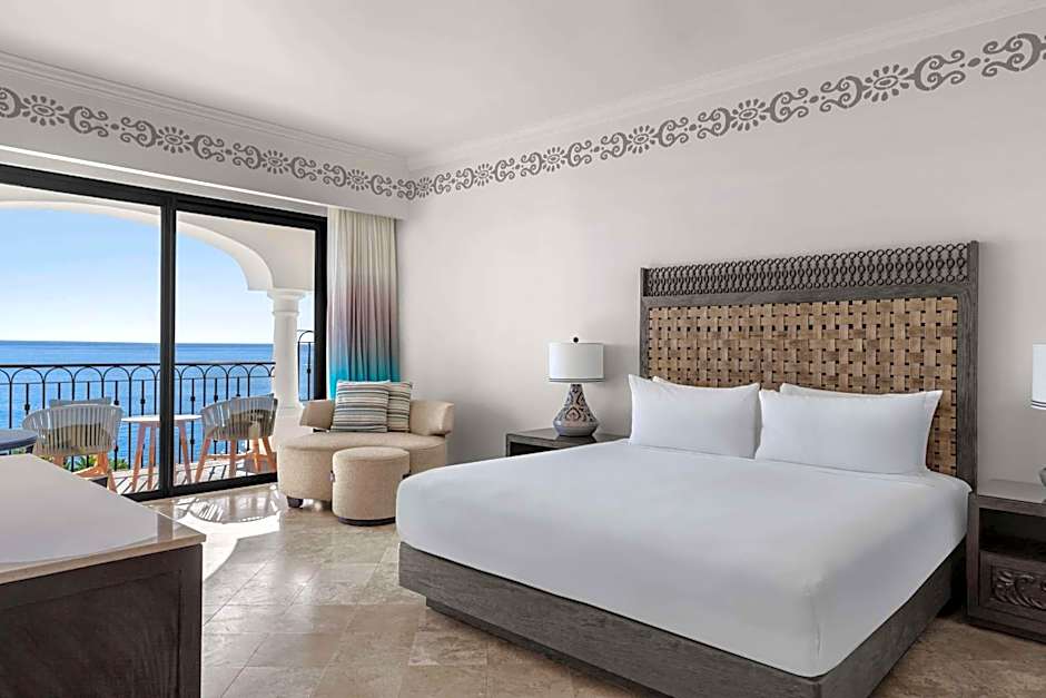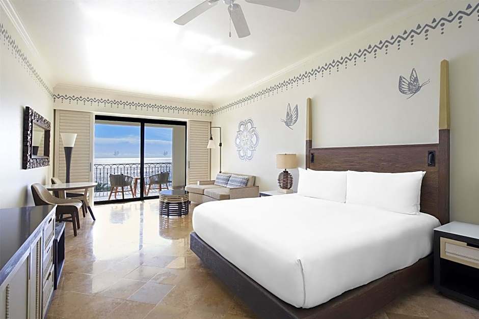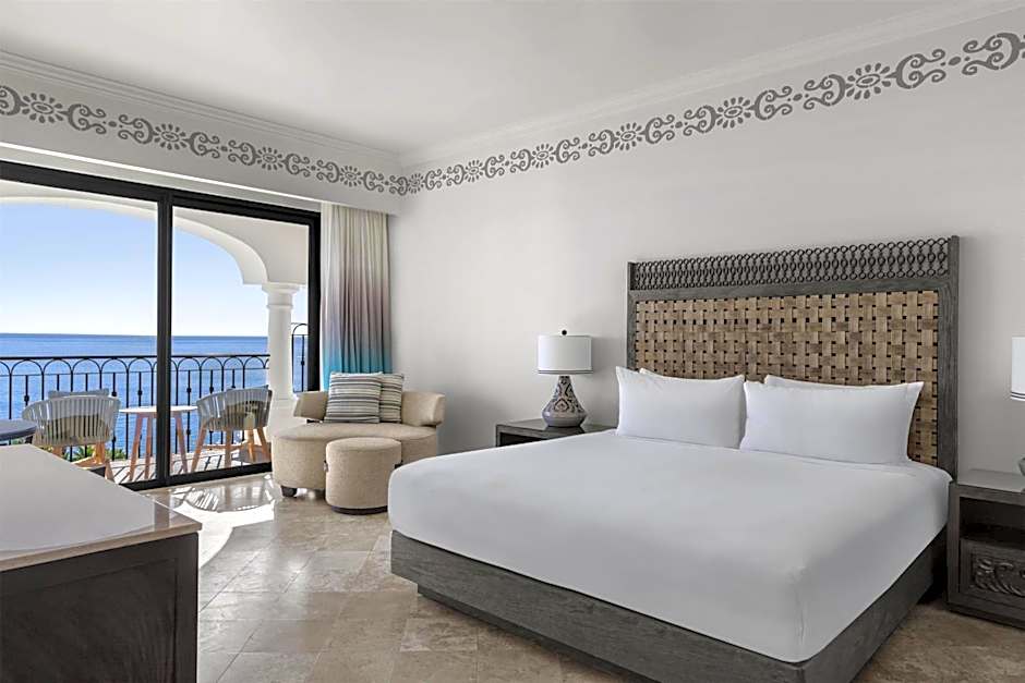 Set on the top floors of the resort, this suite has separate living area with sofa bed, private furnished balcony with views of the Sea of Cortes, a walk-in shower and large hydromassage bath.