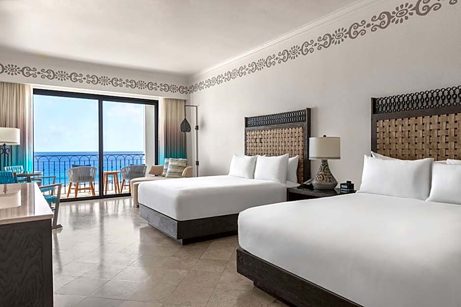 The Hilton Los Cabos offers a variety of rooms including suites and triple/quadruple rooms. All rooms are non-smoking and have an ocean view. The room sizes range from 549 sqft to 1270 sqft. The rooms can accommodate 3-4 adults and 2-3 children, with beds typically being either 1 king size bed or 2 queen size beds.