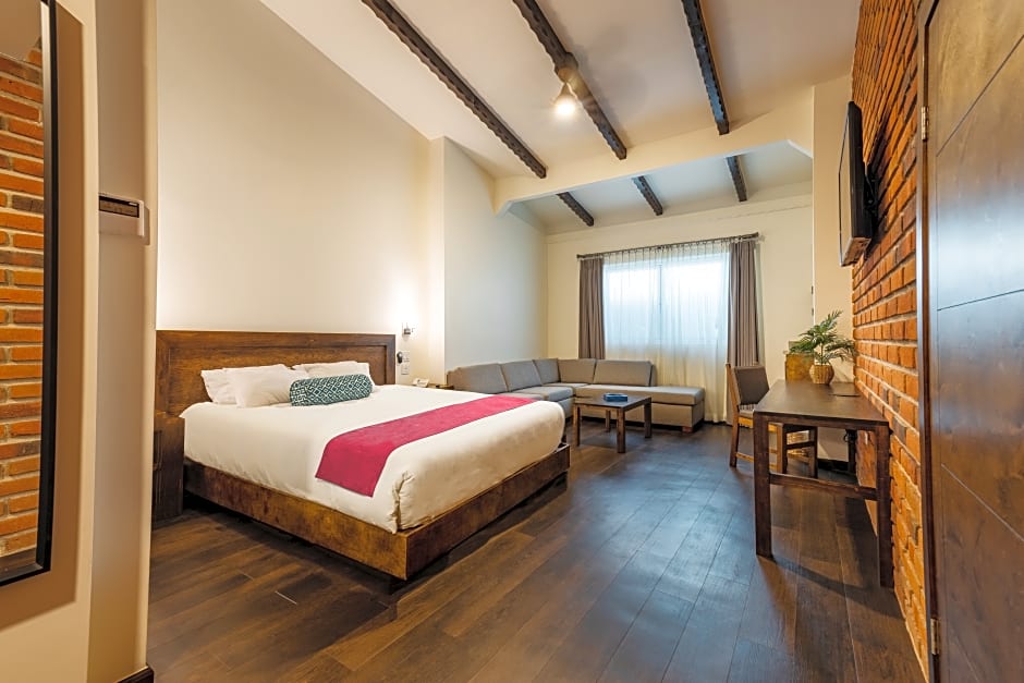 The types of rooms available at San Nicolas Hotel Casino include Deluxe Queen Room with Two Queen Beds, Superior Double Room, Superior Studio, and Deluxe King Room. Smoking is not allowed in any of the rooms. The Deluxe Queen and Superior Double rooms can accommodate 4 adults and 2 children, while the Superior Studio and Deluxe King rooms can accommodate 2 adults and 0 children. The bed sizes range from Queen to King, with some rooms also having a sofa bed.