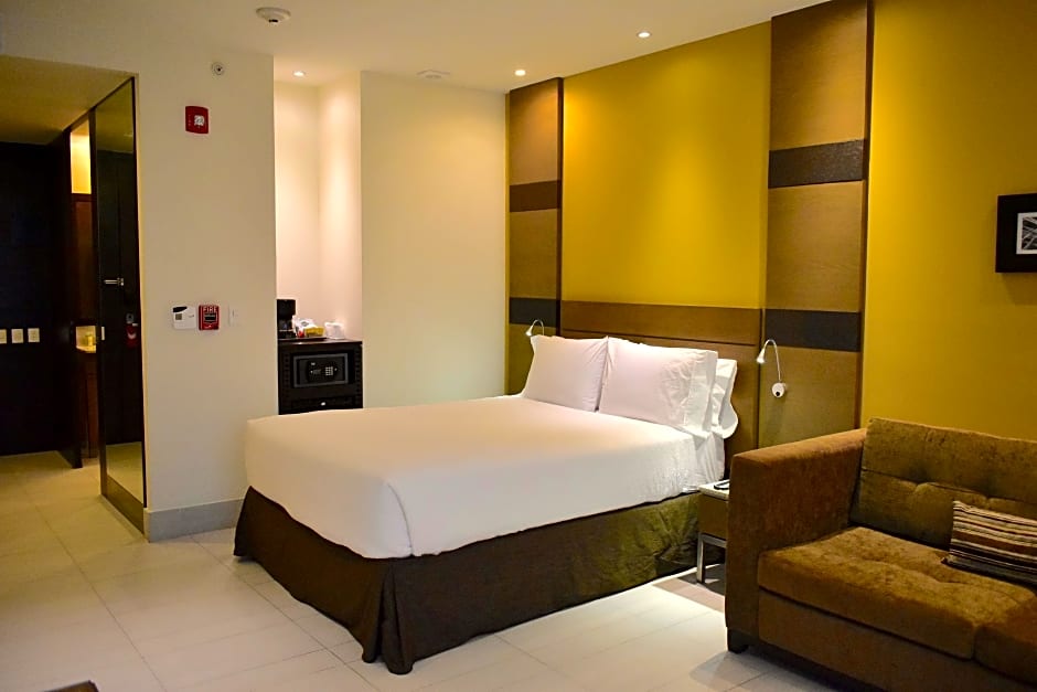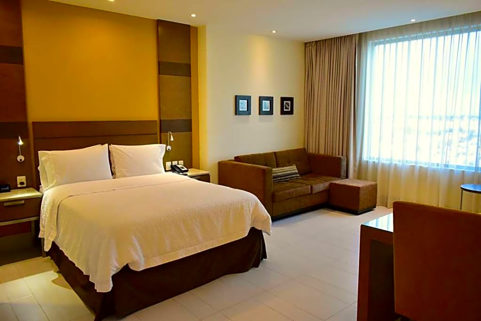 The Hampton Inn by Hilton Ciudad del Carmen offers a variety of room types. These include Queen Rooms with a sofa bed, Single Rooms with a sofa bed, Queen Studios, and Double Rooms with two double beds. All rooms are non-smoking and can accommodate up to 4 adults and 3 children. The bed sizes range from a queen size bed to double beds.