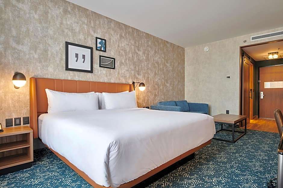 The hotel offers a variety of room types including traditional guest rooms with 1 king bed or 2 queen beds, a one-bedroom king suite with a sofa bed, and a deluxe king room with a sofa bed. All rooms are non-smoking and can accommodate 2 adults. Each room is equipped with either a king size bed or queen size beds and has a room size of 32 sqft or 43 sqft for the suite.