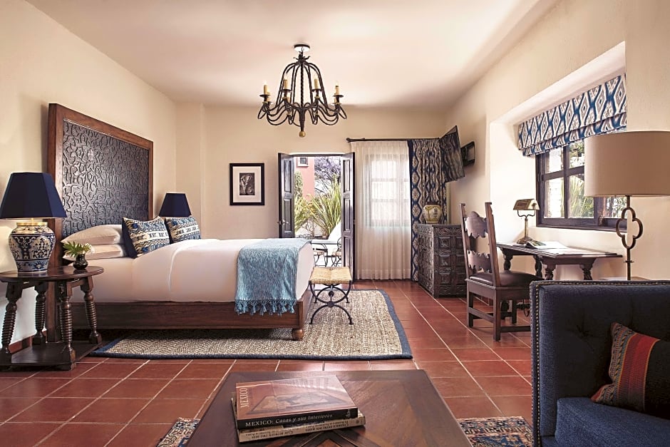 The Casa de Sierra Nevada, A Belmond Hotel in San Miguel de Allende offers a variety of room types including Deluxe One-Bedroom Suites, Deluxe Junior Suites, Deluxe Rooms, Deluxe King Studios, Junior Suites, and Studio Suites. None of the rooms allow smoking. The rooms vary in size, with the Deluxe One-Bedroom Suite being the largest at 893 sqft and the Deluxe Room being the smallest at 323 sqft. The occupancy of the rooms ranges from accommodating 2 adults and 1 child to 3 adults and 2 children. The beds available in the rooms include queen size, king size, twin beds, and sofa beds.