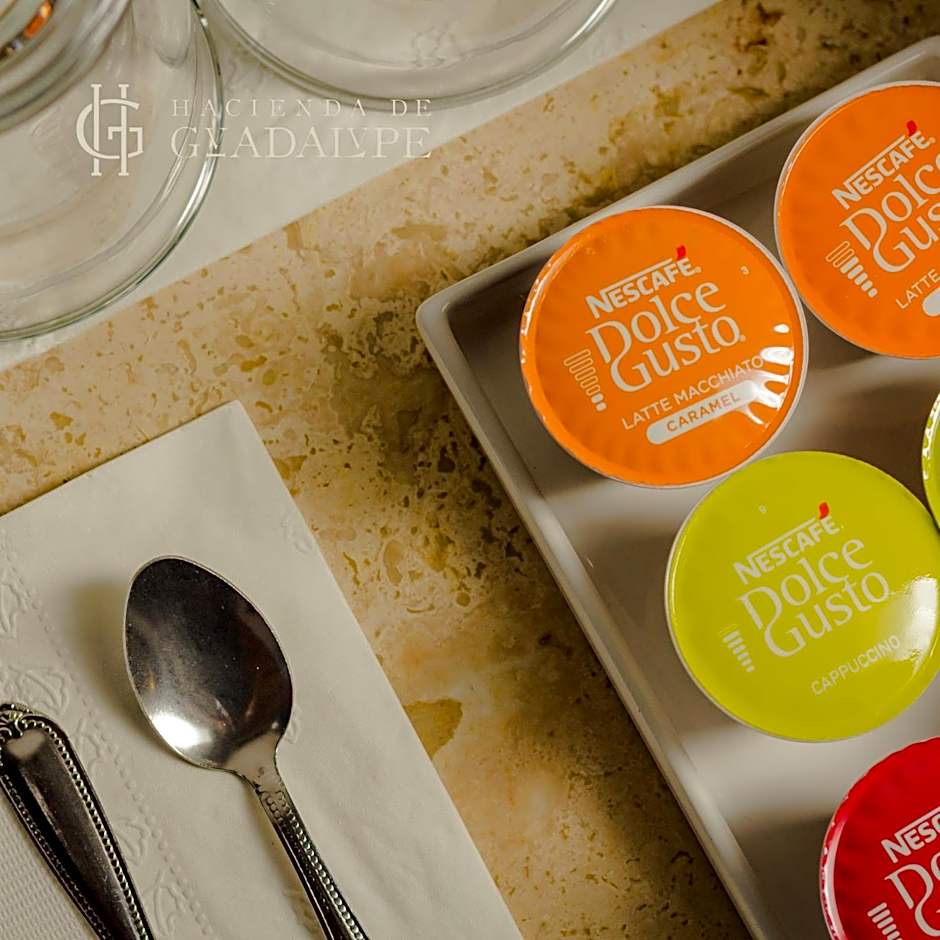 The Hotel Boutique Hacienda Guadalupe has a restaurant called Estoril on site. The restaurant offers a mix of French, Japanese, and Mexican cuisines in a family-friendly and traditional ambiance.