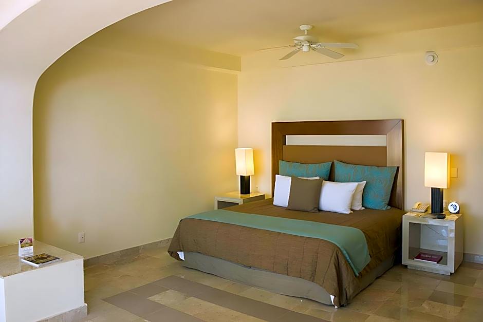 This spacious room offers a king-size bed, satellite TV and a furnished balcony with wonderful views of Puerto Marques Bay. The marble bathroom includes a dressing area and combination bath/shower, bathrobes & slippers.