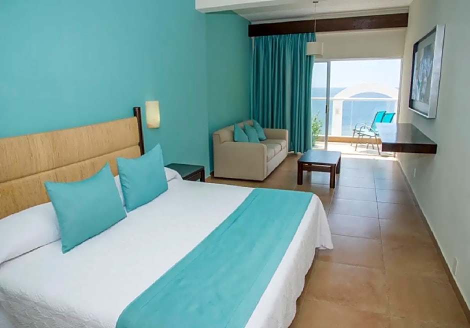 Estandar familiar una recamara con vista al mar is 431 square feet and includes either 2 double beds 131-150 width or a king-size bed 150-183 width.