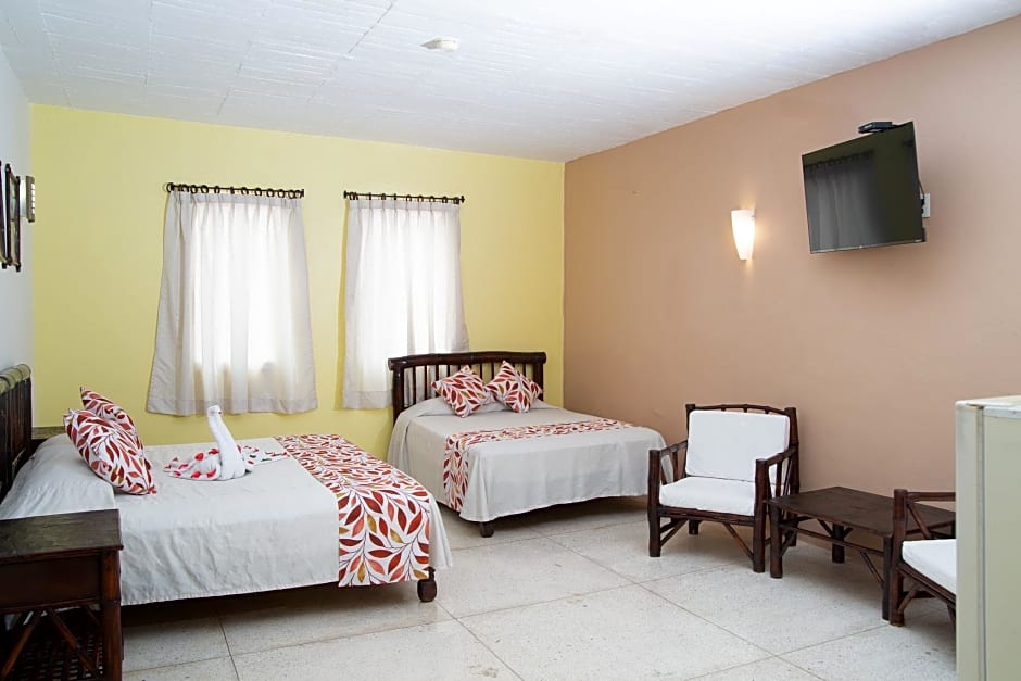 The Hotel Zihua Caracol offers Standard Double Rooms which can accommodate up to 4 adults and feature two double beds. These rooms are non-smoking and have a room size of 172 sqft.
