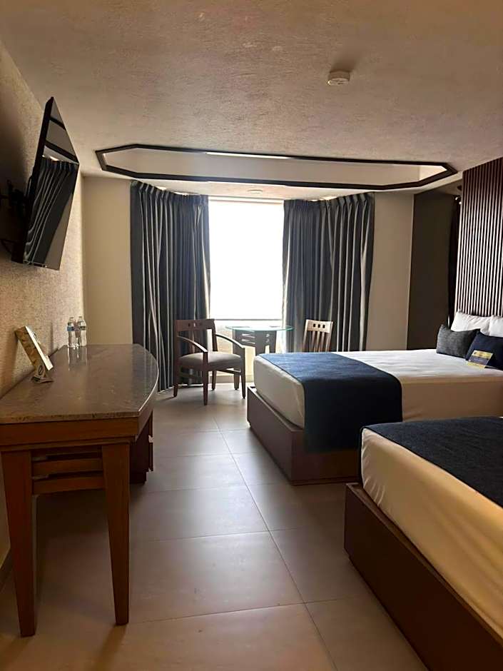 The Hotel Guadalajara Plaza Ejecutivo Lopez Mateos offers a variety of rooms including Double Rooms, Suites, Standard Double Rooms, and Deluxe King Suites. The Double Rooms and Standard Double Rooms have a room size of 312 sqft and can accommodate 2 adults and 1 or 2 children. These rooms have 2 double beds or 1 king-size bed respectively. The Suites and Deluxe King Suites have a larger room size of 581 sqft and can accommodate 2 adults and 2 children. These rooms have a combination of a sofa bed and either 2 double beds or 1 king-size bed.