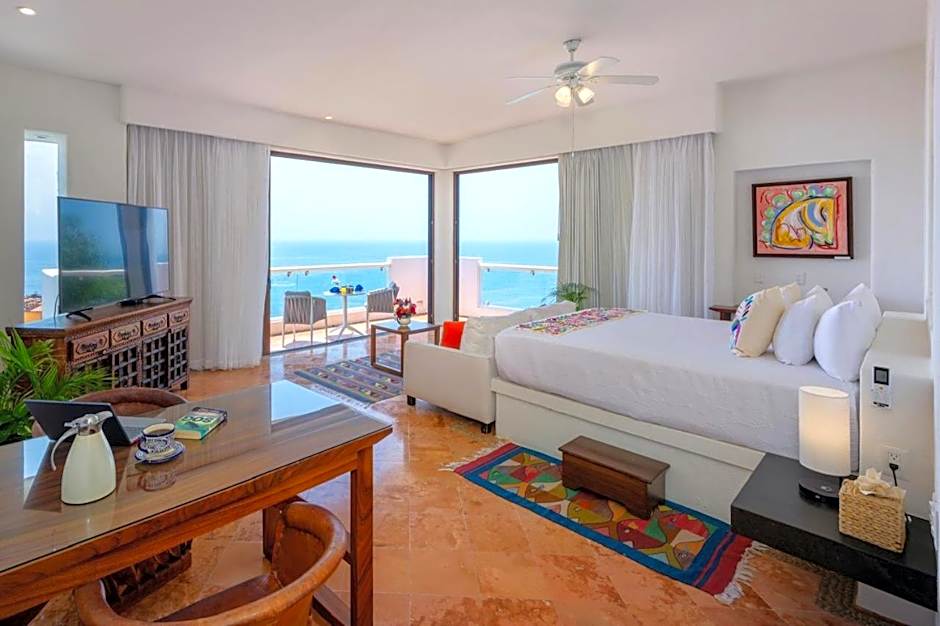Private entrance, terrace, and room options with garden or mountain views enhance every stay, with easy elevator access to upper floors. This adults-only boutique blends private luxury with thoughtful amenities in a four-star Puerto Vallarta setting.