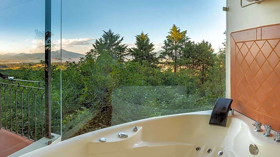 Address: Camino Real Al Estribo, 31 Colonia El Calvario. Featured amenities include Spa/Wellness packages, Private Parking (free), Wifi (free), Room service, 24-hour front desk, Air conditioning, Bar, Sun deck, Terrace, Elevator, Parking On Site (free), and views of the lake and mountains. Additional conveniences include a tour desk and non-smoking rooms.