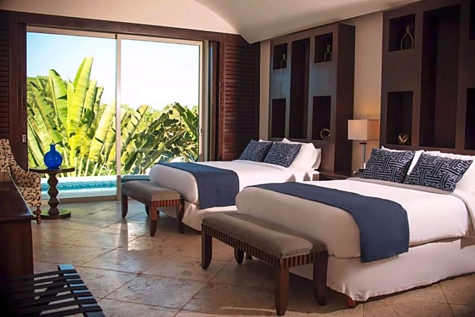 Several suite options offer variety, including the Deluxe Suite and Suite, Terrace, both around 538 square feet, as well as the Suite with Private Pool. The Deluxe Suite features two queen-size beds, while the Suite with Private Pool includes a king-size bed. Other suites provide king- or queen-size beds, and some listings indicate accommodations for up to 8 adults and 5 children. Mastercard and Visa are accepted for payment, while cash is not, and on-site private parking is free for a smooth arrival and departure.