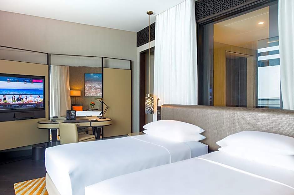 The hotel offers Double or Twin Rooms, which are TwinDouble in type and measure 323 sqft. These rooms do not allow smoking and can accommodate up to 4 adults and 3 children. The beds available in these rooms are 2 Double beds and 1 King size bed.