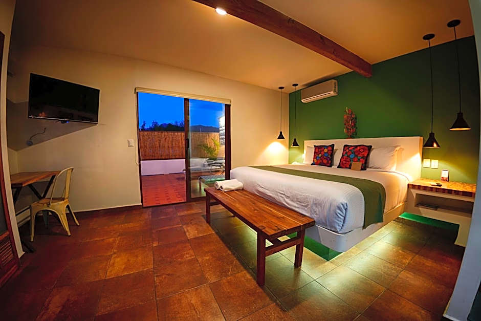 For those looking to unwind after a day of sightseeing, Casa De Sierra Azul offers the perfect retreat in the form of a King Room with a spa bath. Imagine soaking in a luxurious spa tub, letting all your worries melt away as you sip a glass of local mezcal. With plush accommodations and elegant decor, this room provides the ultimate in relaxation and comfort. Indulge in a soothing bath before slipping into a sumptuous king-size bed for a restful night's sleep, ensuring you wake up refreshed and ready for another day of adventures in Oaxaca.
