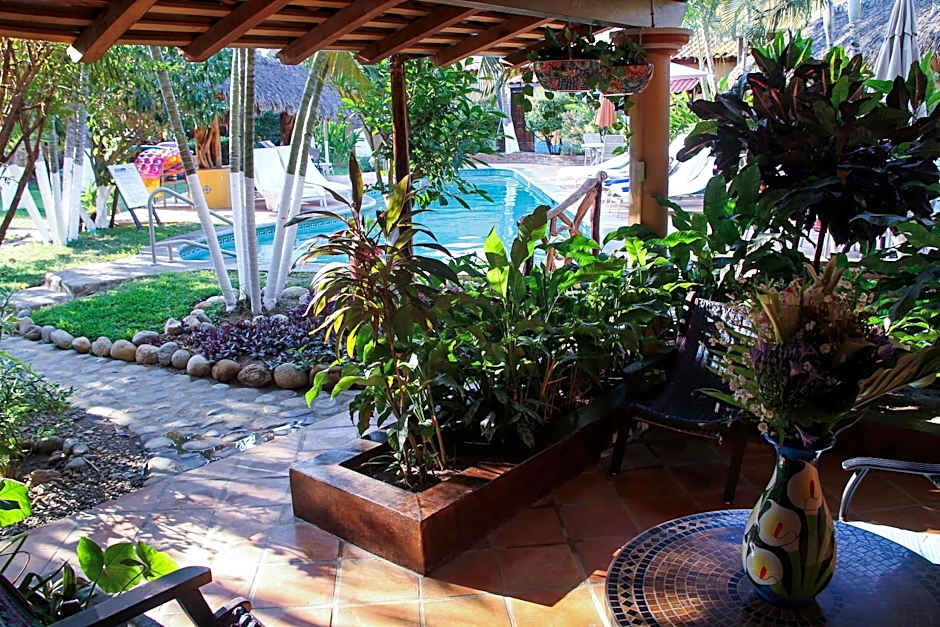 This studio features views of the gardens and comes equipped with 1 queen-size bed and 1 single bed, a fully equipped kitchen and a private bathroom with hot water. It features unique wood work and Mexican tiles and stone work. It also has a private patio area, and cleaning is provided Monday through Saturday. Ceiling, floor fans and AC are provided.