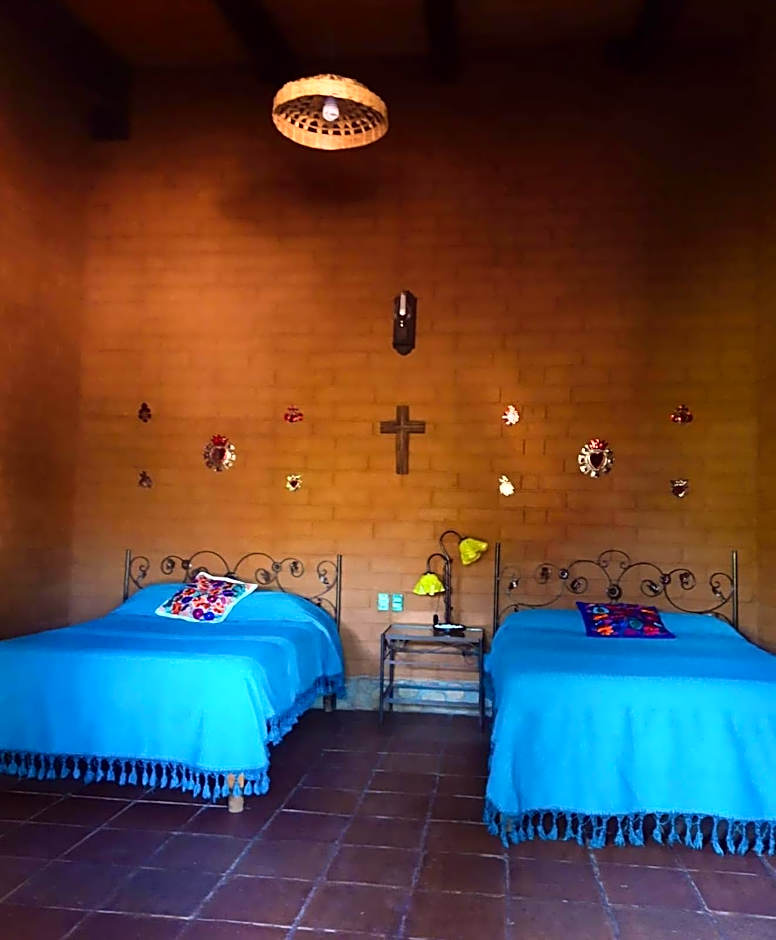 This lodge is located about 30 minutes from Oaxaca de Juarez, off the beaten path. A place to relax, curl up on a hammock to read a book by the swimming pool, enjoy the scenary ( full mountain views) foliage and flowers, their friendly cats and dog and delucious meals. The beautiful decor of the rooms are typical authentic Oaxacan. The owners Fernando and Fernanda over extended themselves to us - laundry, served us dinner in our room, helped with airplane and taxi reservations, not to mention showing us around their property where there are additional apartments for rent, huge pottery workshop. They offer a Pre-hispanic experience: temazcal massage and sauna in a clay made igloo. Using local herbs to heal. It is similar to a sweat lodge used to cleanse one's body of toxins and negative energy. It is quite rustic, which adds to the experience. I can't say enough about the quality of our stay and its offerings. WE LOVED IT HERE!!! We definitely will return in the future.