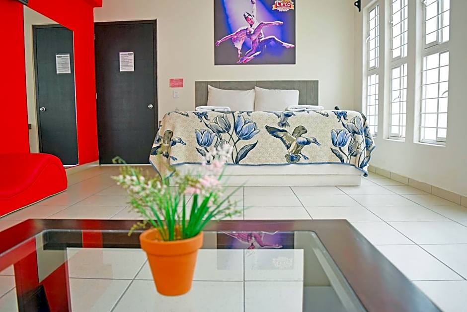 For those looking to indulge in a more luxurious experience, the Deluxe Suite with a jetted tub is the perfect choice. With accommodations for 2 adults and 4 child, this room offers a touch of extravagance alongside the circus-themed charm of the motel. Unwind after a day of exploring all that San Pablo Etla has to offer in the relaxing jetted tub, making your stay even more memorable.