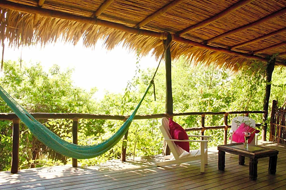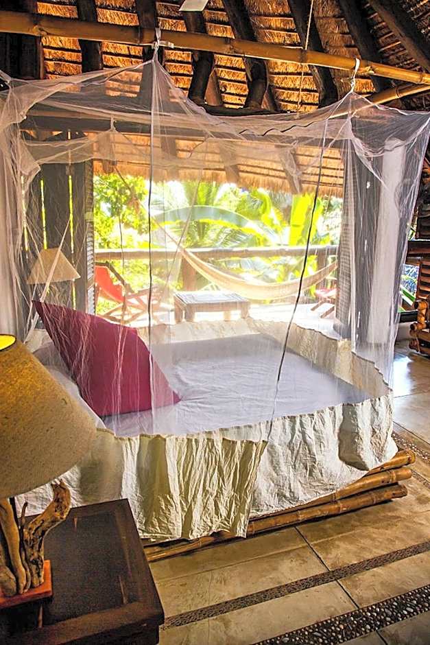 This room is equipped with fans, mosquito nets, safety box and a private bathroom with hot water. The terrace has a hammock and reclining chairs.