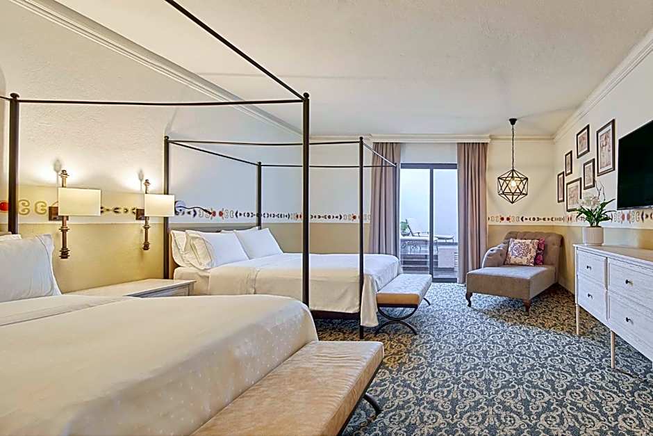 兩間館內餐廳讓用餐氛圍保持熱鬧:Florentino 在適合家庭的環境中供應墨西哥與國際料理,Italiano 則提供義式與地中海風味。房客可在露臺或有花園景觀的陽台用餐,在不必離開飯店的情況下享受輕鬆的度假氛圍。