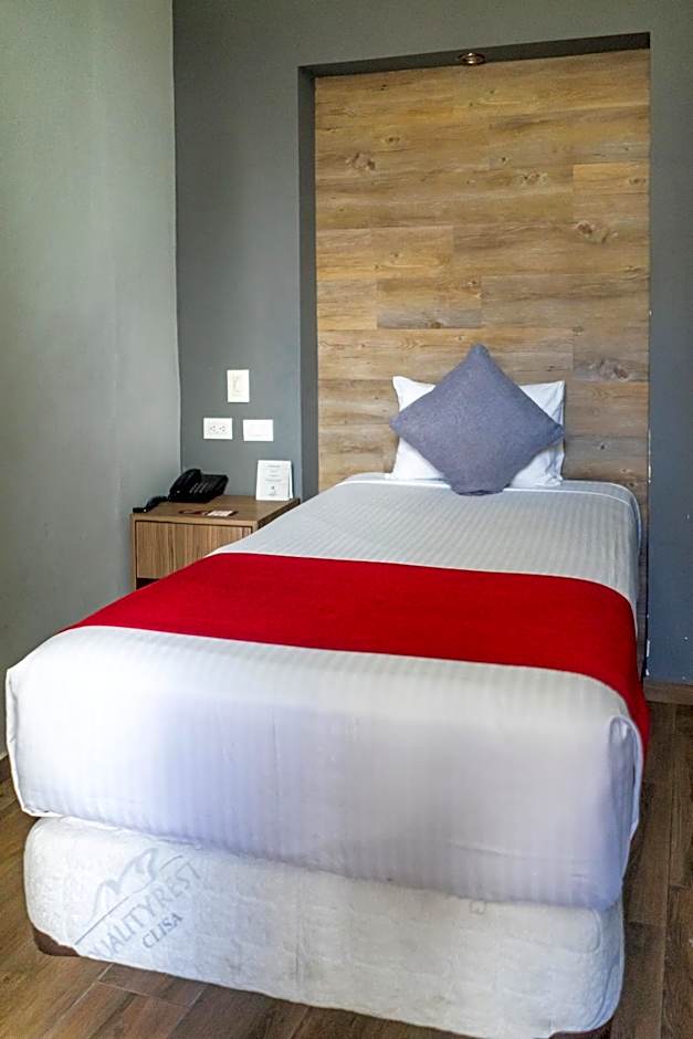 Hotel Hidalgo offers a variety of room types including Standard Family, Standard Double, Triple with Balcony, King, Single, Standard Twin, Twin with Balcony, and Small Twin rooms. The rooms range in size from 108 sqft to 215 sqft. Smoking is not allowed in any of the rooms. The occupancy varies, accommodating between 1 to 6 adults and 0 to 2 children. The beds available in the rooms include Double, Twin, and King size beds.