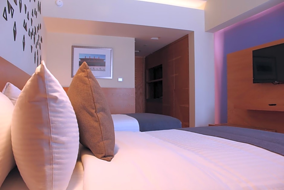 The Hotel México Plaza Querétaro offers two types of rooms: the Double Room with Two Double Beds and the King Room. The Double Room has a size of 291 sqft and can accommodate 4 adults and 2 children, with 2 double beds. The King Room has a slightly larger size of 301 sqft and can accommodate 2 adults and 1 child, with 1 king-size bed. Smoking is not allowed in both room types.