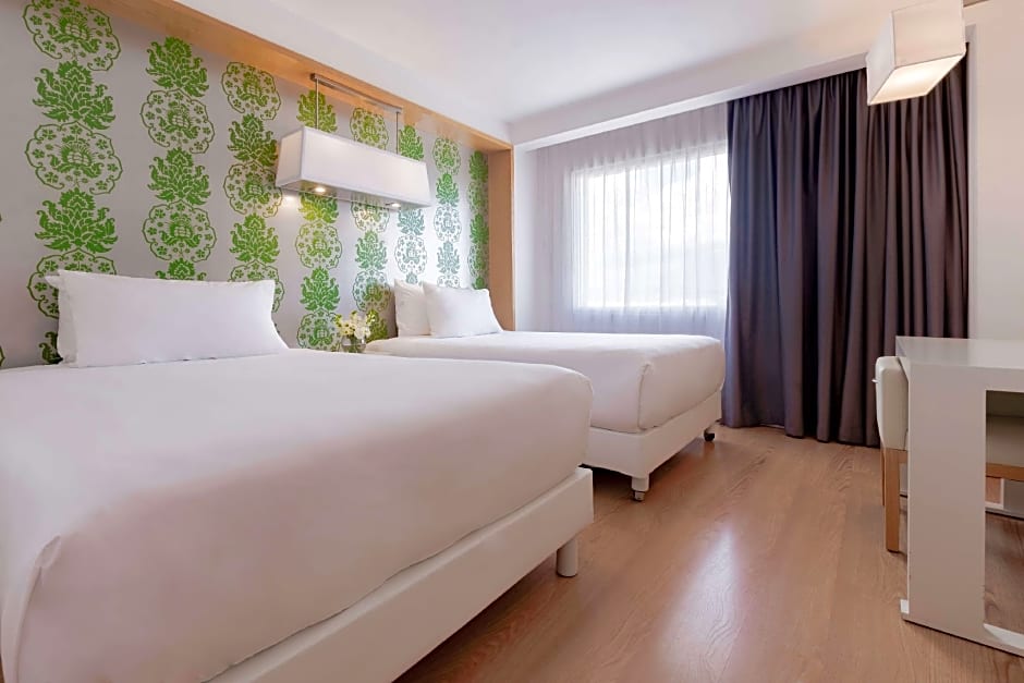 At NH Queretaro, the hotel offers a variety of room types including Junior Suites, Superior Double or Twin Rooms, and Standard Double or Twin Rooms. Smoking is not allowed in any of the rooms. The Junior Suites can accommodate 2 adults with a King size bed or 3 adults with an extra bed and a Queen size bed. The Superior Double or Twin Rooms and Standard Double or Twin Rooms can accommodate 2 adults with either a King size bed or Twin beds. Some Standard rooms can accommodate additional guests with extra beds, with options for 3 or 4 adults.