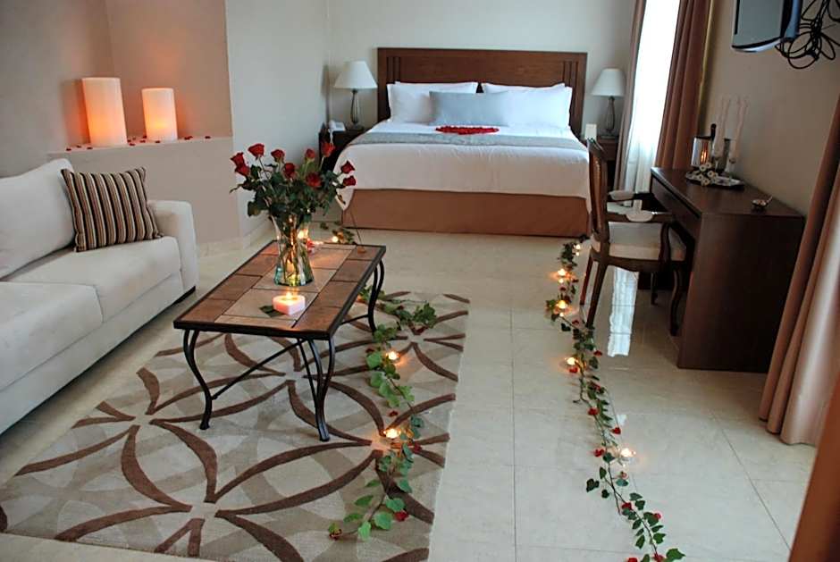 Decorated in light colors, this spacious air-conditioned junior suite offers a king-size bed, a seating area, free Wi-Fi and a flat-screen TV with cable channels. The private bathroom includes a bathrobe and free toiletries.