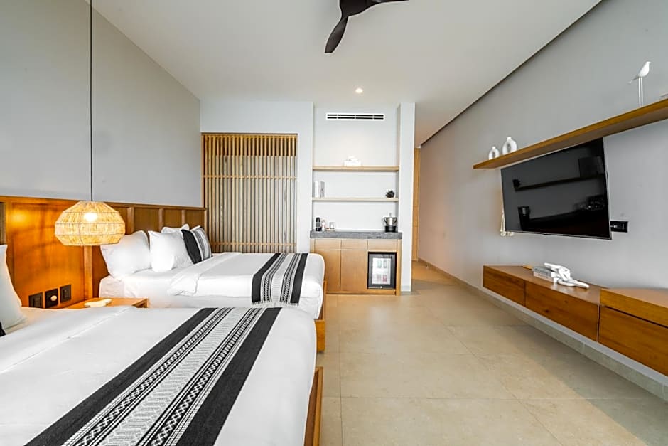 Amaranto Bacalar Hotel Boutique is an adults-only property with a selection of rooms and suites to suit different needs. Room options include Deluxe Junior Suite (538 sqft) with 1 King bed and space for 2 adults and 1 child, as well as Suite configurations such as 2 Double beds (377 sqft) and a Suite with a Private Pool (431 sqft). Other lake-view options include Suite, Lake View (431 sqft) and Room With Lake View, plus Room - 2 Bed, Lake View (all non-smoking). Accommodations are non-smoking and do not list accessibility features; smoking is not allowed. Payment is via American Express, Mastercard, or Visa (cash not accepted). Additional services like a tour desk, shuttle service, and airport shuttle are available for extra charges.