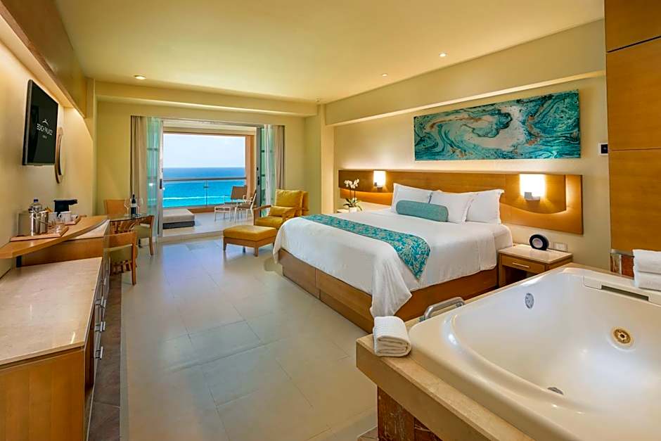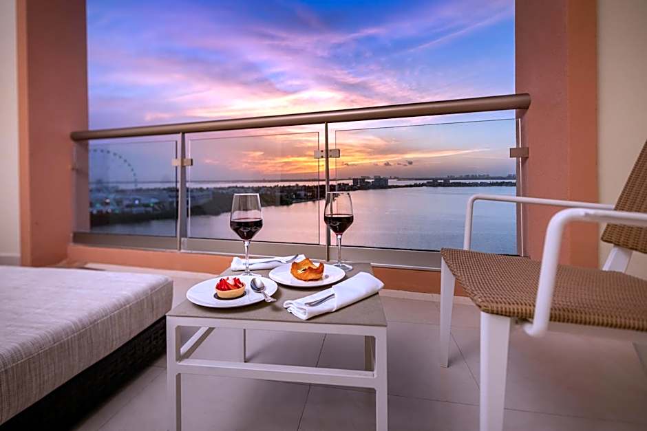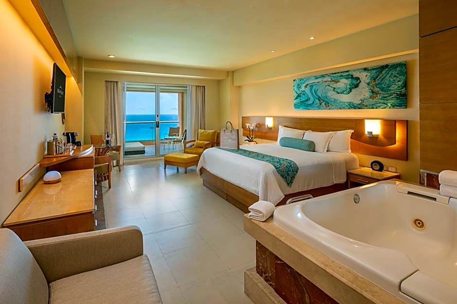 This room features one king or 2 double beds, a double hot tub, furnished balcony, and a liquor dispenser. It offers views of Nichupté Lagoon.