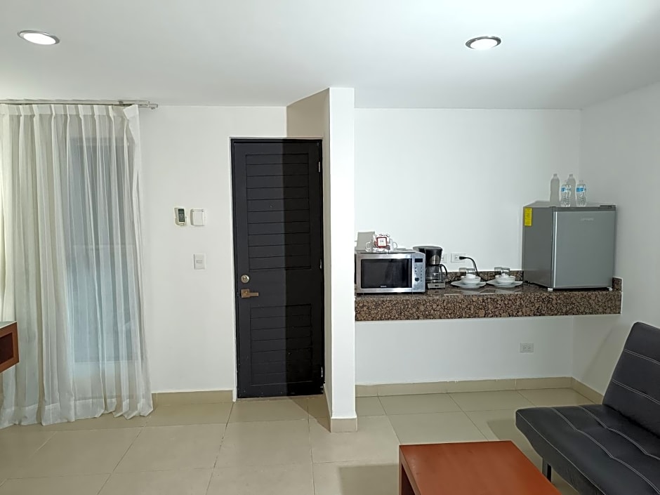 The staff were excellent and the room was a nice size and included a couch, desk, fridge, microwave and a few dishes. The air conditioning worked well. I loved the fresh smell of the towels and sheets. Mercado 28 is around a 15 min walk away. Breakfast was good and available in the courtyard by the pool.